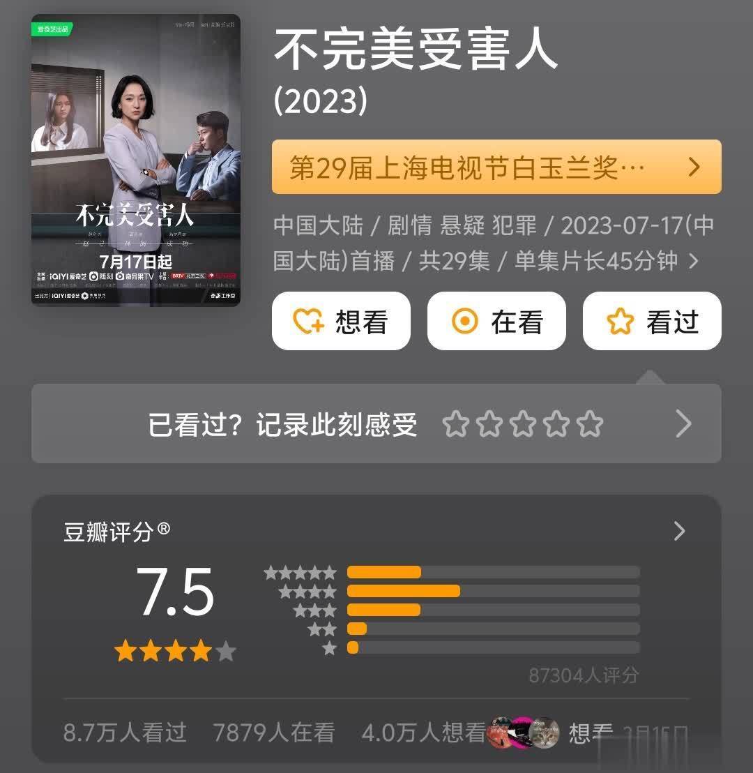 杨阳此前执导的《不完美受害人》已获白玉兰最佳导演提名,豆.5分的口碑印证其创作实力。